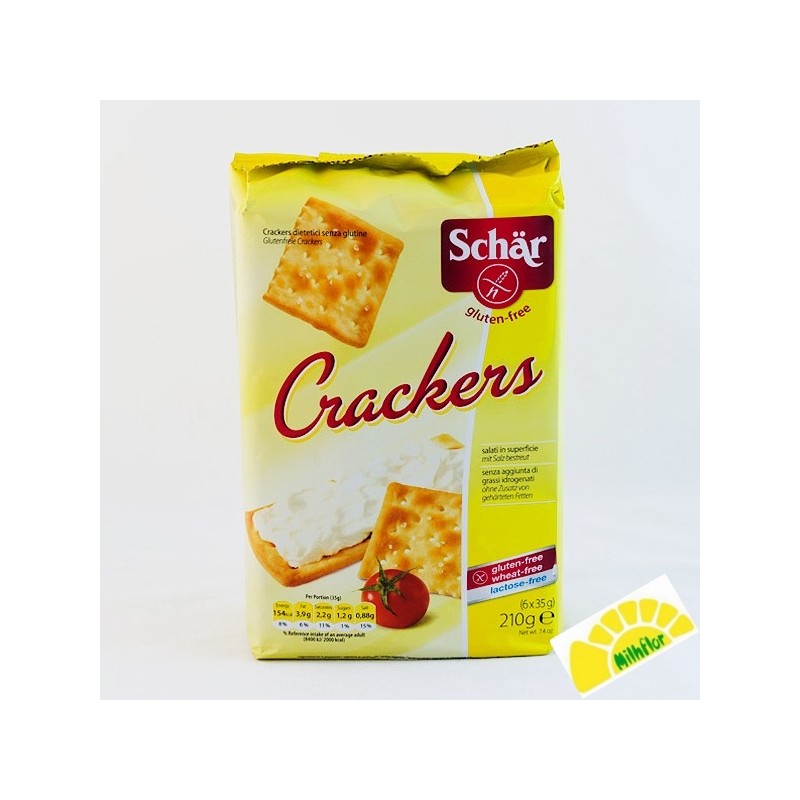 Crackers Crackers sin glutenPicoteo sano con alforfónEl pan crujiente para todas las ocasiones. Ahora más fino y con sano alforfón. Estos finísimos crackers convencen porque son ligeros digestivos y sabrosos.INGREDIENTES fécula de patata harina de arroz harina de alforfón huevos grasa vegetal no hidrogenada almidón de maíz modificado destrosio sal yodada levadura espesante. hidroxipropil metil celulosa emulsionante. ésteres monoacetil y diacetil tartárico de los mono- y diglicéridos de los ácidos grasos gasificantes. tartrato monopotásico carbonato ácido de amonio aroma naturale. SIN LACTOSACOMPOSICION Val. energético kJ 1830 / kcal 434proteínas 45 ghidratos de carbono 786 gde los cuales azúcar 35 ggrasas 108 gde los cuales grasas saturadas 62 gfi bra 22 gsódio 10 gpeso. 210 g (6x35g)