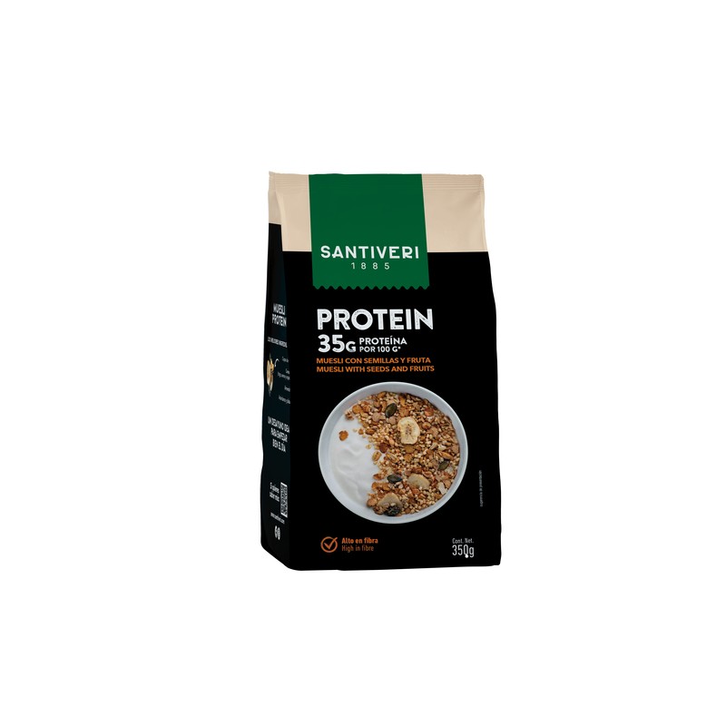 El Muesli Protein de Santiveri es una combinación equilibrada y crujiente pensada para quienes buscan un desayuno o tentempié nutritivo y con un buen aporte de proteínas vegetales.