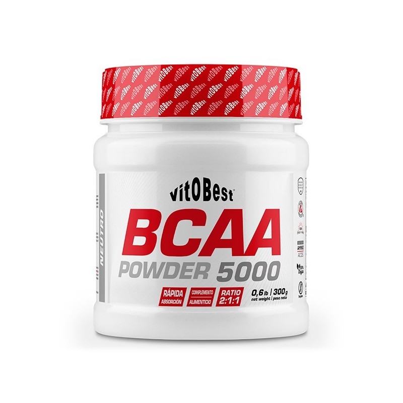 BCAA 5000 Powder, de Vitobest®, contiene L-Leucina, L-Isoleucina y L-Valina (BCAA 2:1:1 Ajinomoto®), aminoácidos esenciales de cadena ramificada que componen casi la tercera parte de los músculos y tienen como principales funciones la síntesis proteica, servir como fuente de energía para músculos y órganos, y ser precursores de otros aminoácidos, como la alanina y la glutamina, en estados catabólicos.