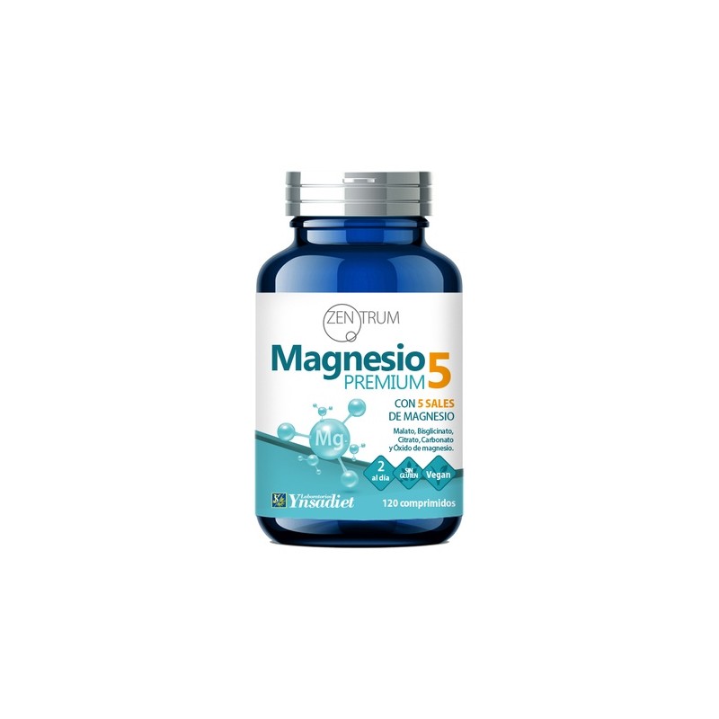 Magnesio premium 5 de Ynsadiet es un complemento alimenticio elaborado a base de 5 sales de magnesio: malato, bisglicinato, citrato, carbonato y óxido de magnesio. El magnesio contribuye al funcionamiento normal de los músculos.